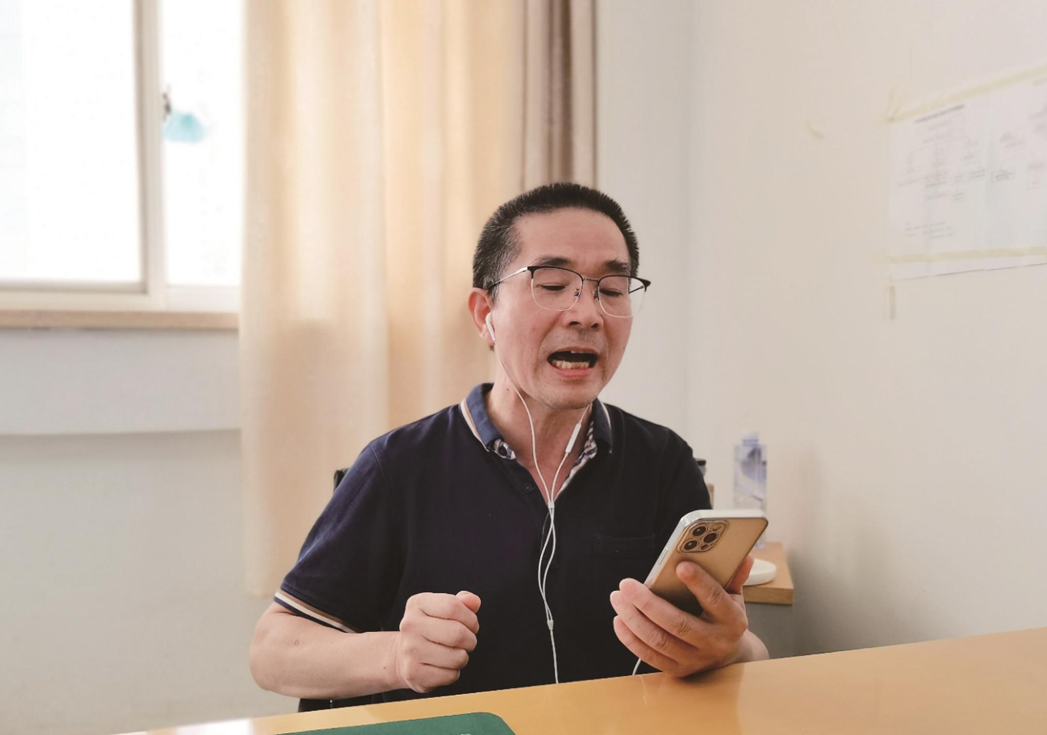 9月23日中午,湖北省中醫院腫瘤科主任醫師李佑民結束上午的工作,打開了手機上的K歌軟件,演唱蘇有朋的歌《珍惜》。近半個月,這支歌一直在他循環播放的歌單里,一有空就會拿出手機學唱。這一天,他要在300多人的醫患微信群里展示才藝。