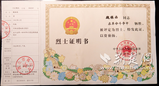 荊楚網(湖北日報網)訊(記者邱玲鵬 通訊員朱銘 代四化 王振海)“59年了,我終于知道了父親的英雄事跡,我為我的父親驕傲自豪。”魏永清得知其父魏振西的英雄事跡后,淚流滿面。