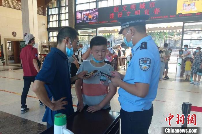 連日來,明月山景區迎來客流高峰,當地治安警察為游客排憂解難。宜春市委宣傳部供圖