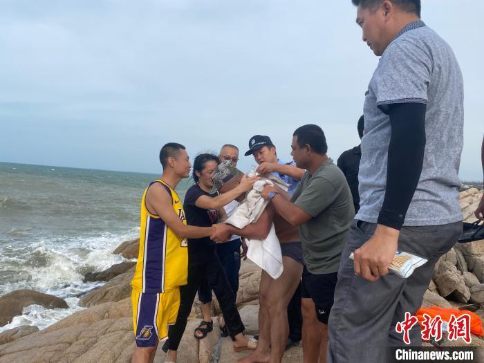 因受熱帶低壓影響,海上風浪非常大,民警高鑫迅速找到合適的下水位置,穿上救生衣沖進海里營救落水群眾。在風浪中靠一個救生圈拖著二人艱難游行十余分鐘后,成功將其營救上岸。上岸后民警對溺水人員做了初步施救措施,隨即將其送到昌化鎮(zhèn)衛(wèi)生院進行進一步救治。目前兩人均已脫離生命危險。