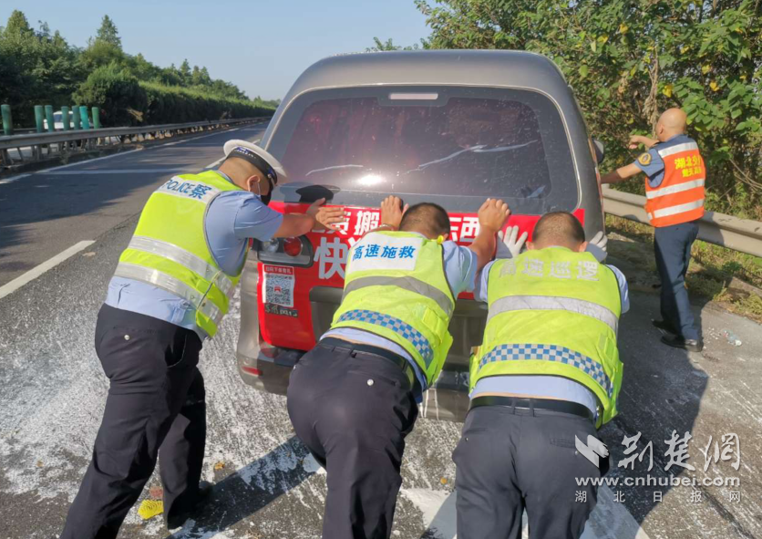 湖北省公安廳高警總隊民警轉移事故車輛(通訊員供圖)