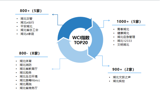 1、聚集湖北省內主要黨政機關政務微信公眾號,根據WCI指數數據進行科學排行,主要從“整體傳播力”“篇均傳播力”“頭條傳播力”“峰值傳播力”四個維度進行評價。