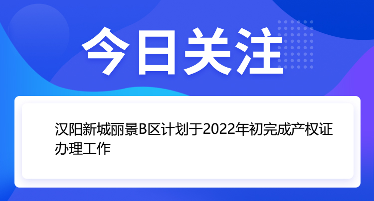 漢陽區: 該項目正在辦理初始登記,計劃在2022年初完成產權證辦理工作。