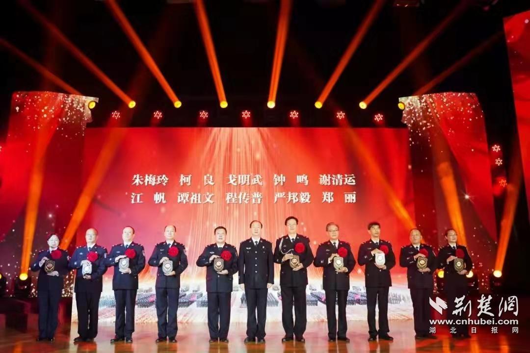 武漢市委常委、市公安局局長李義龍向退休民警代表頒發“榮休紀念章”。照片由通訊員應后威提供。