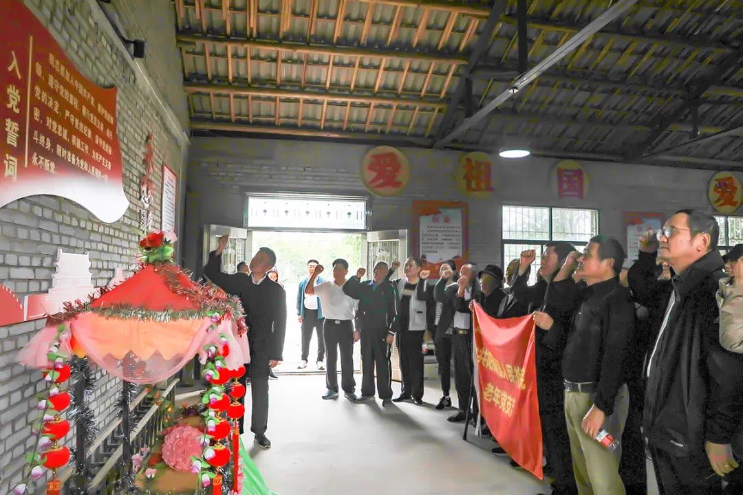 在花果村民俗文化館,滿(mǎn)頭銀發(fā)的老同志們齊刷刷地列隊(duì),在該院老年黨支部書(shū)記費(fèi)國(guó)高的帶領(lǐng)下,高舉右手握拳,重溫入黨誓詞,激勵(lì)老干部牢記入黨誓詞,堅(jiān)定理想信念,發(fā)揮好黨員的先鋒模范作用。