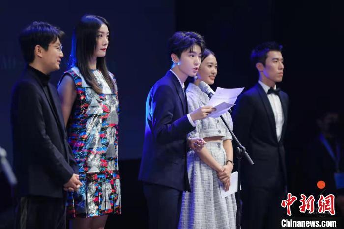 王俊凱作為青年評審向《宇宙探索編輯部》頒出青年評審榮譽最佳影片。 平遙國際電影展組委會提供