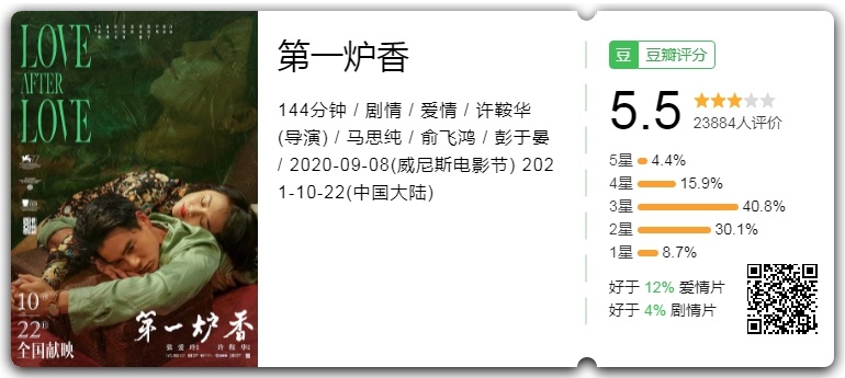 然而《第一爐香》還是沒能翻盤,豆瓣評分5.5分,票房剛過3000萬元。