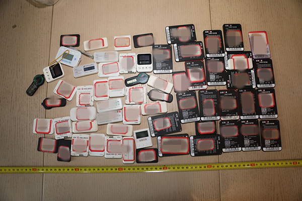 黃石市公安局下陸分局打掉特大電信網絡詐騙“跑分”窩點,現場查獲大量U盾。