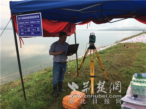 2016年夏,陽新縣網湖、寶塔湖、富河汛情告急,防汛抗洪搶險工作十萬火急。他先后兩次趕往現場,頂著大風大雨,對兩處不同的險情滑坡段進行了不間斷監測,渴了,喝口水;餓了,吃口面包……每次收工下來,全身濕了個透。他說,“在這樣的分隔堤上工作有一種陷入汪洋的恐懼感,一旦潰堤,高位水倒灌我們則無處可逃,雖然害怕但依然要堅守”。