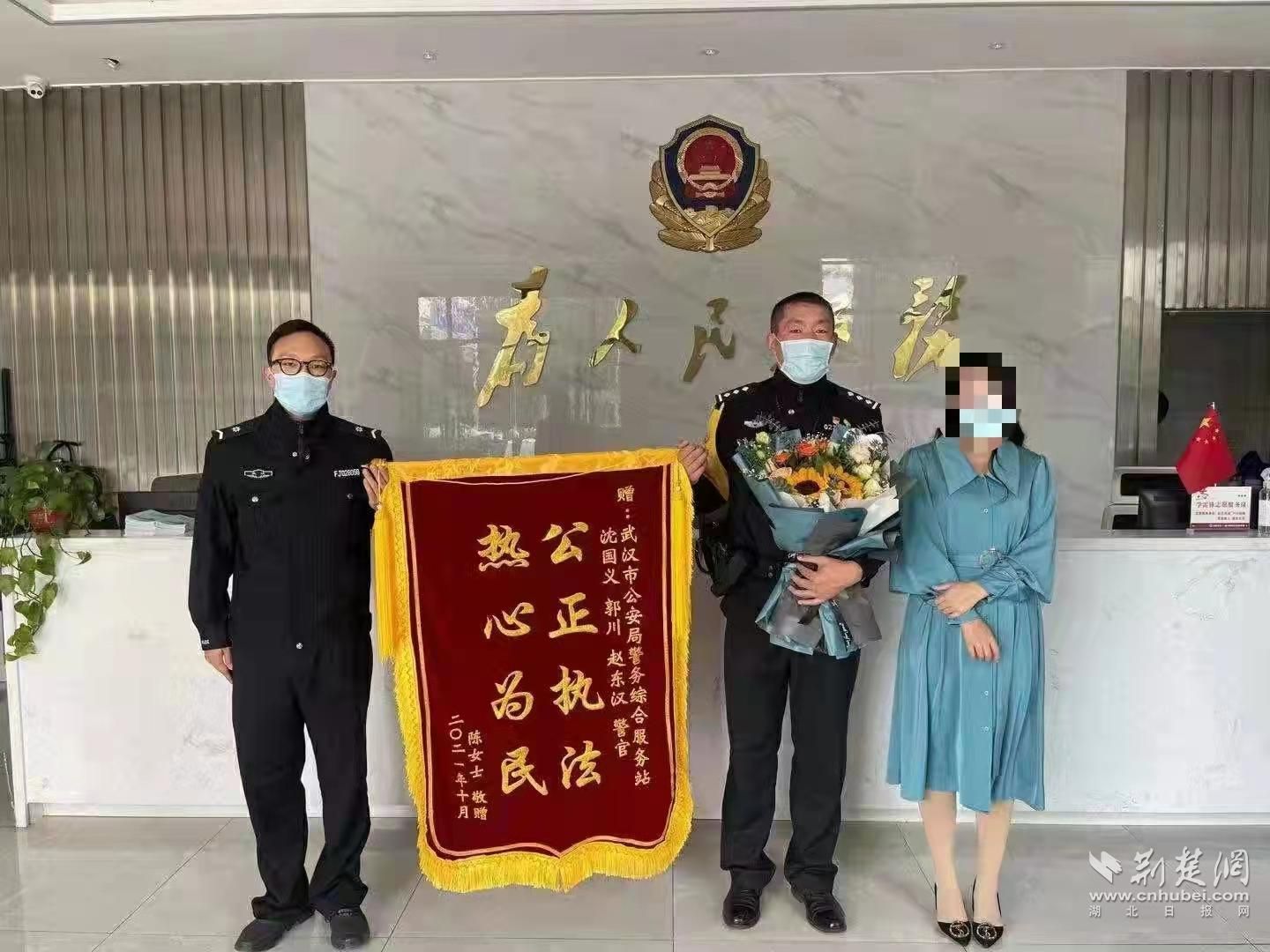 荊楚網(湖北日報網)訊(通訊員張敏、聞期駿)11月8日,武漢市公安局武漢東湖新技術開發區光谷天地警務站突然進來一位女士,只見她手捧一束鮮花,走進站內掃視后,徑直將鮮花和錦旗送到值班民警沈國義手中。該女士陳小姐說,丟失的4萬元一分不少被找到,這束鮮花他值得擁有。