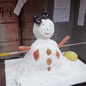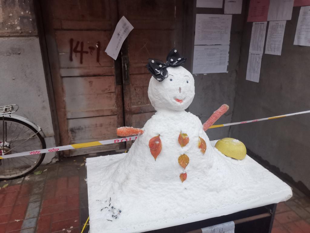 寧夏銀川市興慶區健康社區某封控單元門口的雪人。新華社記者許晉豫 攝