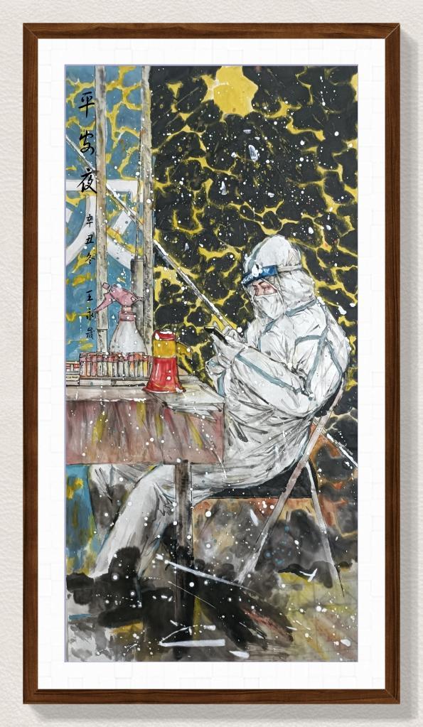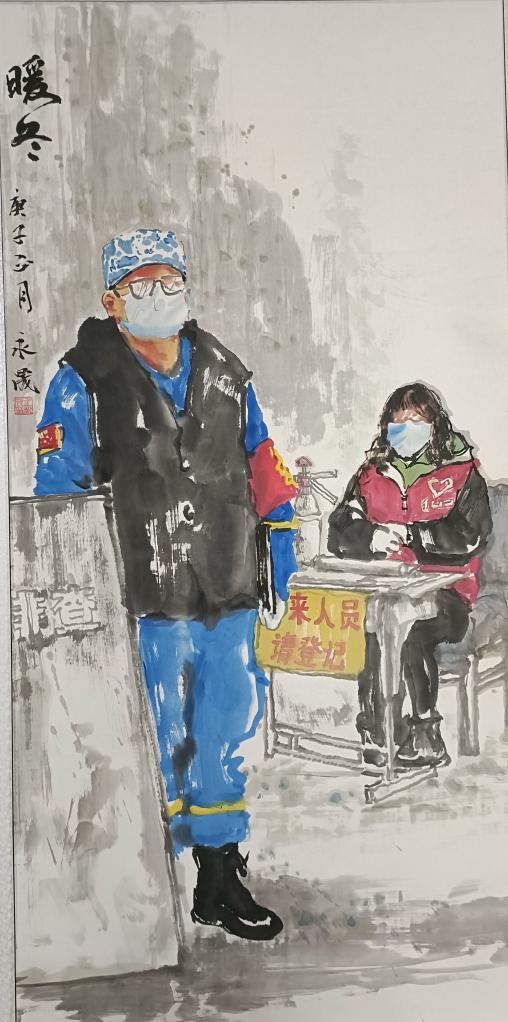 去年春節(jié)前后,王永晟在社區(qū)志愿防疫值守一個(gè)月;今年初冬,他再次成為一名社區(qū)志愿者,白天鏟雪、緊盯小區(qū)進(jìn)出人員行程碼、進(jìn)行體溫測(cè)量登記,晚上擠時(shí)間為“抗疫天使”畫(huà)像。