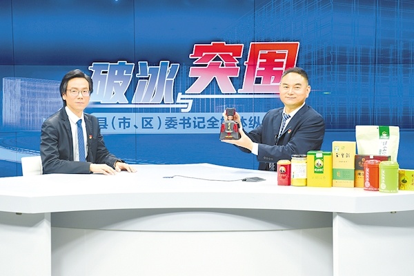 11月14日,谷城縣委書記黃克立 (右)做客湖北日報(bào)5G演播室。 (湖北日報(bào)全媒記者 何宇欣 攝)