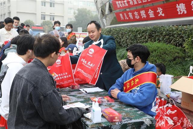 11月19日,在武漢東湖學院,一場征兵宣傳活動正在舉行?;顒又?,大四學生王云龍表達了強烈的參軍意愿。