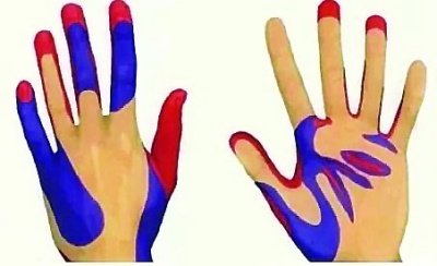洗手過程中,有些部位容易被忽略或漏洗,為病原體提了生存的環境。紅色部分是最常見被遺忘的角落,其次為紫色部分。