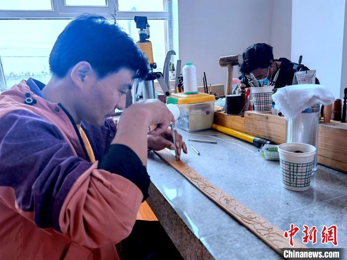 12歲時,因為從馬上摔斷腿,萬德在當藏醫的舅爺家休養,期間他第一次接觸到了皮雕技藝。那時的他從來也沒想過皮雕將會成為他后半生的“事業”。