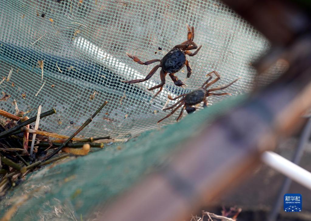 這是11月25日在上海海洋大學崇明基地拍攝的扣蟹實驗池塘。新華社記者 劉穎 攝