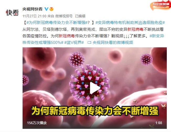 發布時間:2021年11月28日19:50 來源: 央視網快看微博