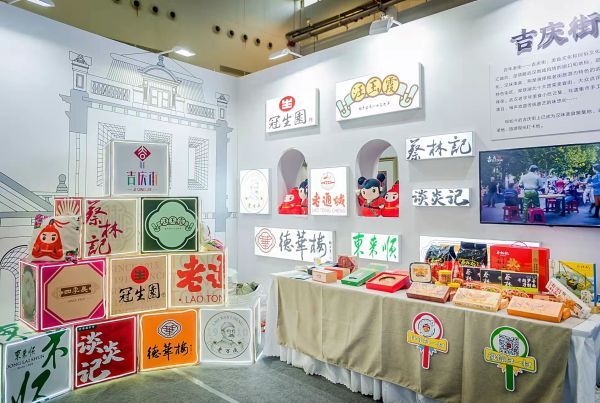 館內還搬來了“吉慶街”,汪玉霞、德華樓、東來順、老通城、四季美……游客現場就可以品嘗到吉慶街上的老字號美食。館內的照片墻上,密集的紅色場館、燈火初上的知音號、佇立街邊的老房子……盡顯多姿多彩的“五色江岸”。