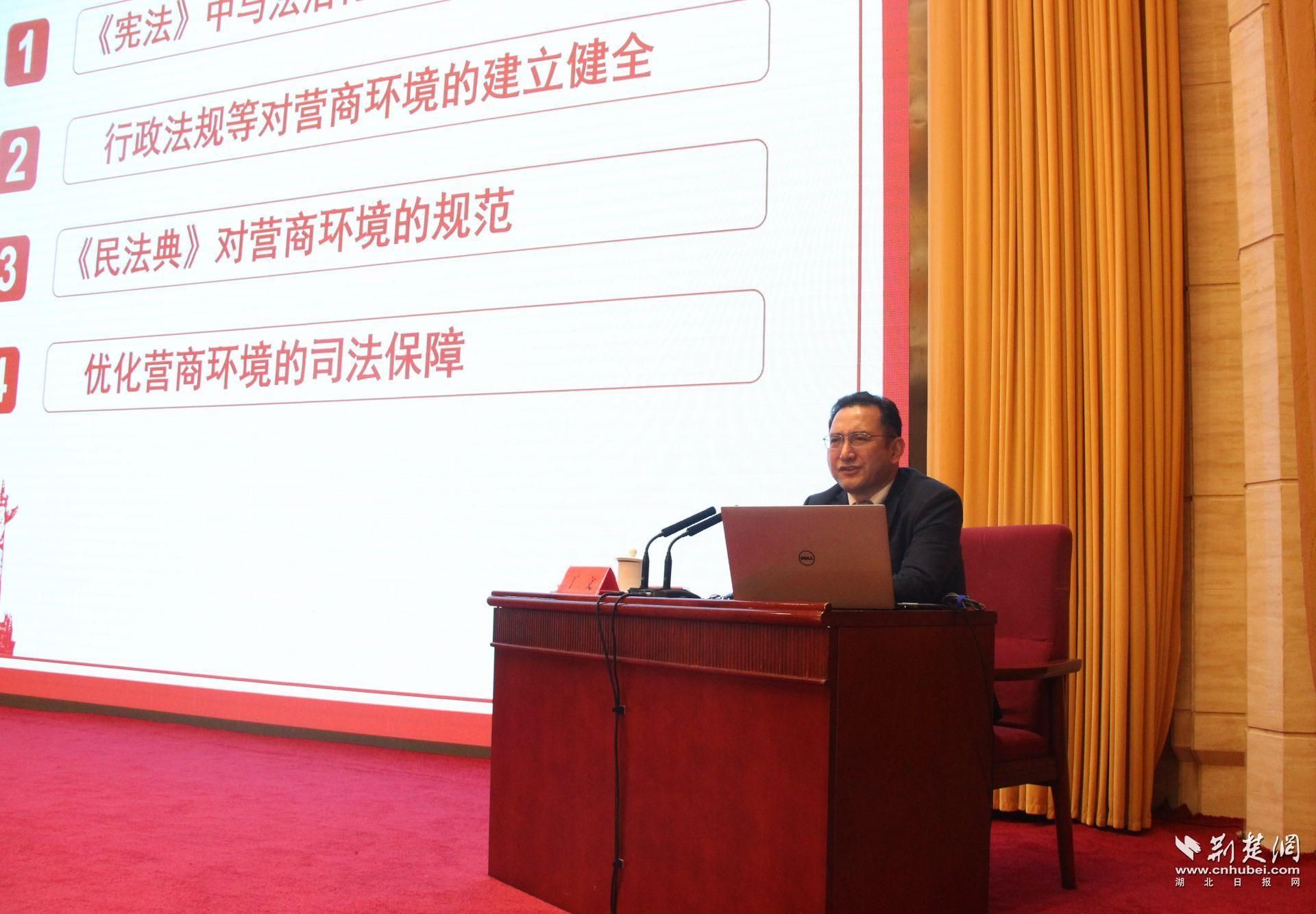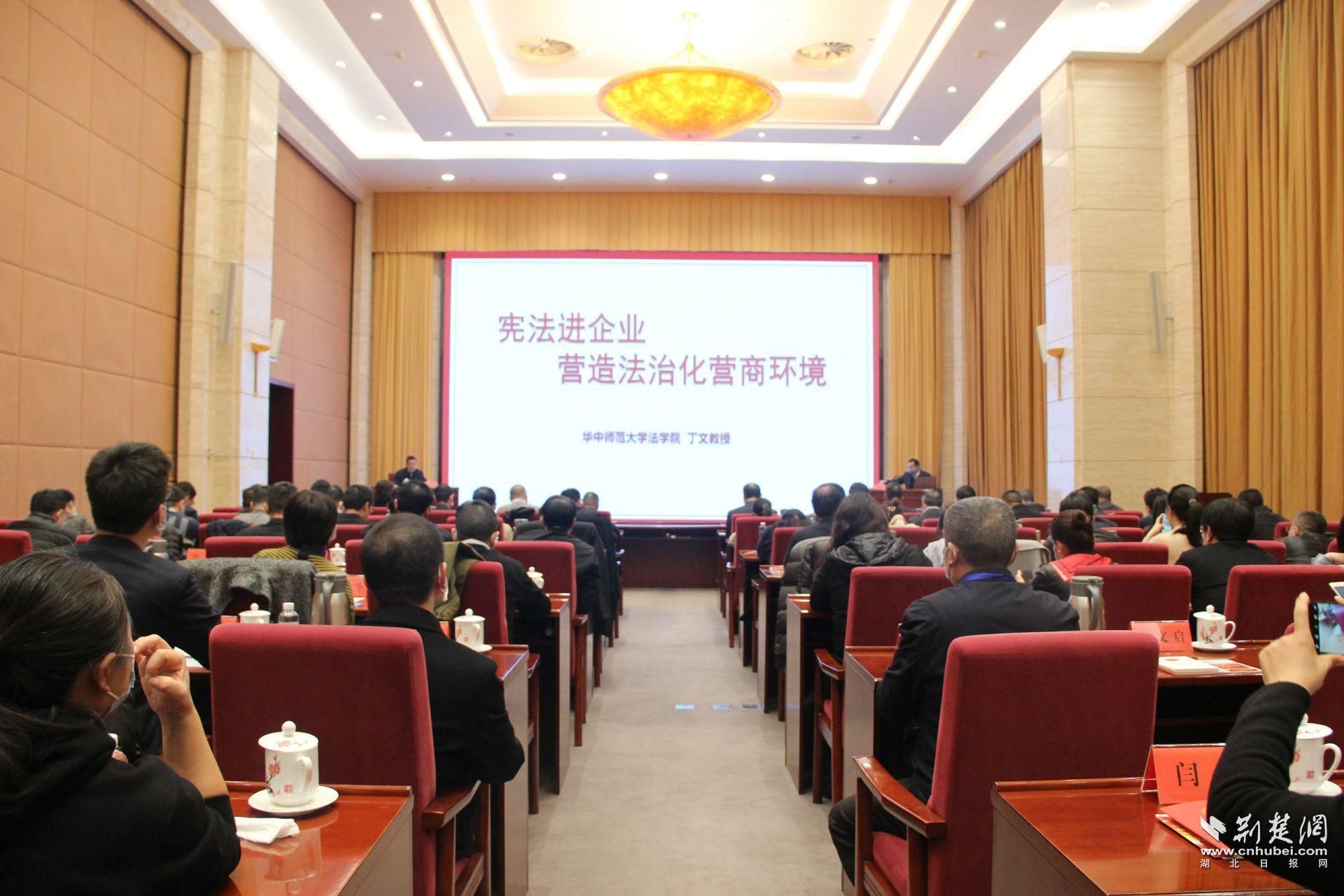 荊楚網(湖北日報網)訊(記者邱玲鵬 肖慧婷)11月29日上午,由省委宣傳部、省司法廳、省普法辦主辦的2021年“憲法宣傳周”啟動儀式在洪山禮堂舉行,活動邀請華中師范大學法學院教授丁文為企業代表進行憲法專題講座。