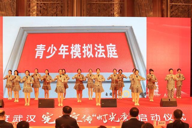 當(dāng)日還舉行了2021年武漢市憲法宣傳“燈光秀”啟動(dòng)儀式。在國家第四個(gè)憲法宣傳周期間,武漢市將開展“憲法宣傳閃屏行動(dòng)”,屆時(shí)將點(diǎn)亮武漢兩江四岸,在全市戶外大屏、公園、學(xué)校、醫(yī)院、機(jī)關(guān)大樓電子顯示屏以及全市機(jī)場(chǎng)、火車站、客運(yùn)站、出租車電子顯示屏、地鐵電視等滾動(dòng)播放憲法宣傳海報(bào)。