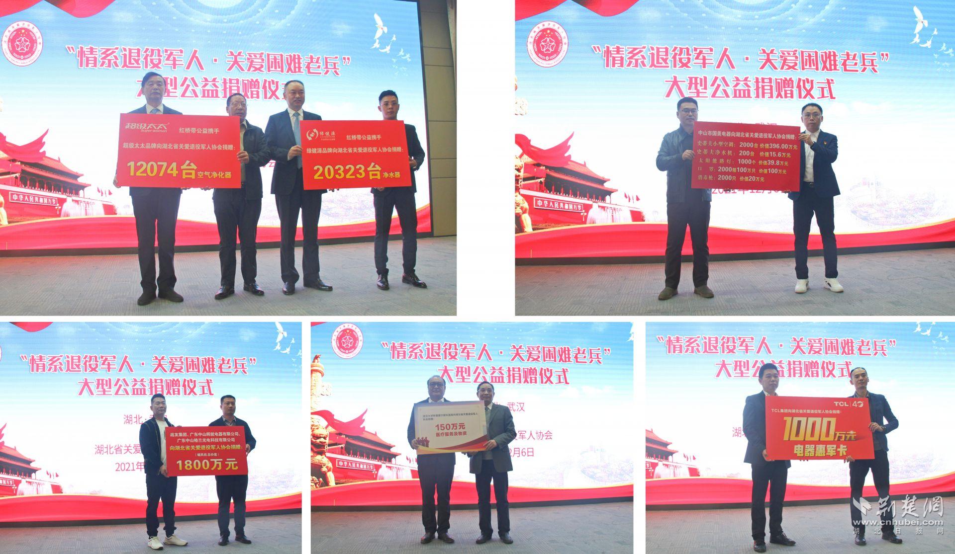 荊楚網(wǎng)(湖北日報網(wǎng))訊(記者肖慧婷 通訊員包曉霽)價值4000多萬元的凈水器、價值3500多萬元的負(fù)離子空氣凈化器、價值1800多萬元的暖風(fēng)機(jī)……12月6日,“情系退役軍人·關(guān)愛困難老兵”大型公益捐贈儀式在漢舉行,來自廣東、湖北等地的8家愛心企業(yè),向湖北省關(guān)愛退役軍人協(xié)會捐贈總價值超過1億元的物資。