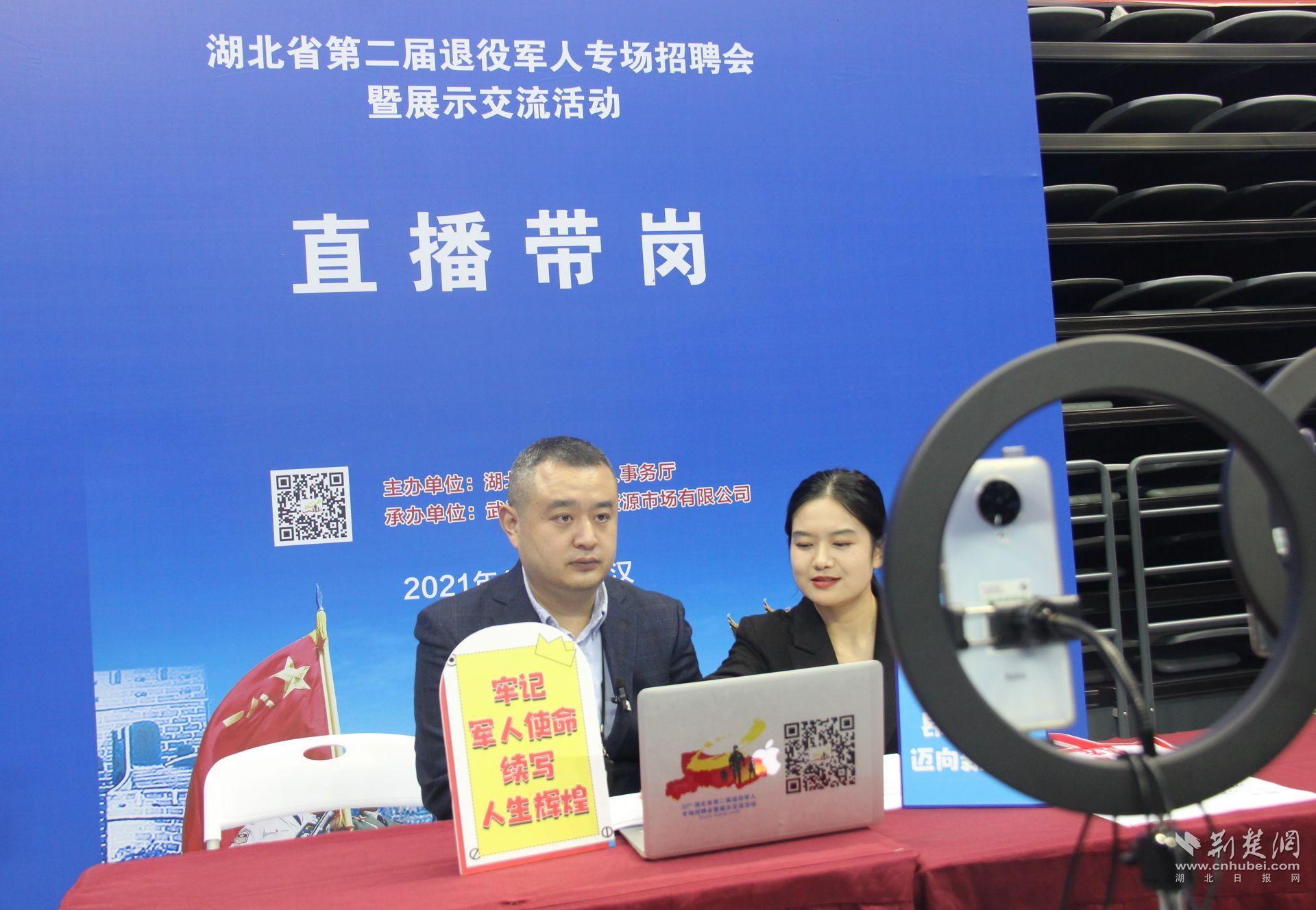 “下面來到我們直播間的是美的集團武漢制冷設備有限公司的招聘負責人,請您為我們介紹一下美的公司招聘的崗位情況……”為了最大限度讓企業(yè)與退役軍人精準對接,活動現場設置了“直播帶崗”環(huán)節(jié),招聘負責人在直播間與退役軍人面對面就崗位屬性、任職條件、福利待遇等問題進行解答溝通。