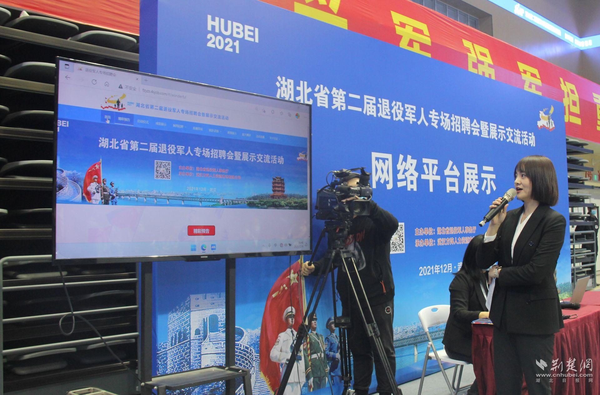 啟動儀式上,湖北主會場與省內17個地市州分會場通過網絡視頻進行連線互動。湖北省退役軍人事務廳黨組書記、廳長周振武在致辭中介紹,近年來我省出臺了一系列優(yōu)撫優(yōu)惠政策,積極開展“三送”進軍營、軍人創(chuàng)新創(chuàng)業(yè)大賽、職業(yè)技能培訓等特色活動,實行公共崗位向軍人專招、支持退役軍人回鄉(xiāng)創(chuàng)業(yè)等措施,擦亮了退役軍人就業(yè)創(chuàng)業(yè)的“湖北品牌”。