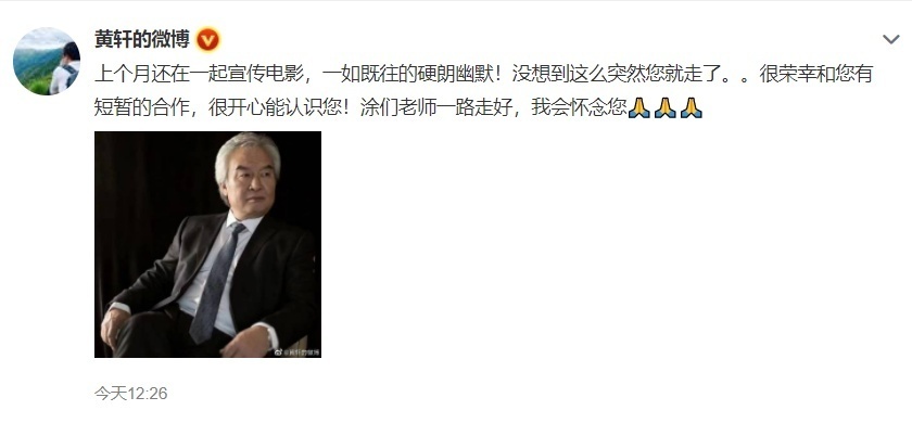 賈樟柯、黃軒等演藝圈人士表達哀思