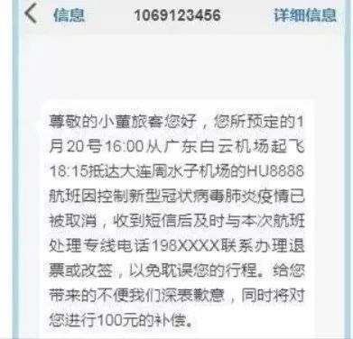 有不法分子借此時機發送帶有“客服電話”或“官方網站”的虛假改簽、退票短信,謊稱該航班、車次等因防疫要求被取消,誘導人們撥打短信中的虛假客服電話或登錄釣魚網站,填寫身份證、銀行卡賬號、驗證碼甚至密碼等敏感信息,盜刷賬號實施詐騙。