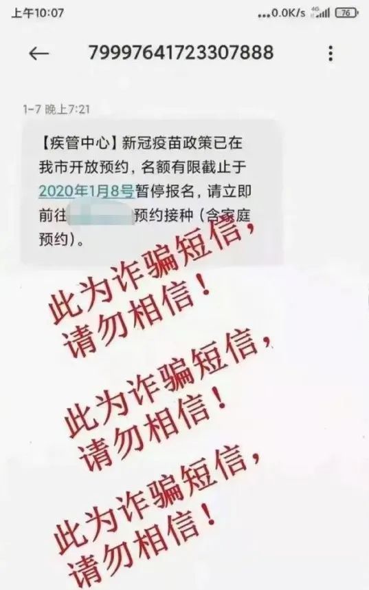 近日,多地市民收到當地“疾控中心”的短信,稱新冠疫苗開放預約,名額有限,并附上釣魚鏈接,引導居民點擊后填寫身份證、銀行卡、驗證碼等信息并進行“預約繳費”。