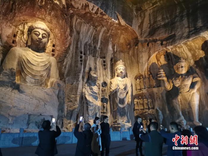 資料圖:唐代佛教造像——洛陽龍門石窟盧舍那大佛(左一),是典型的東方面孔。中新社記者 劉鵬 攝