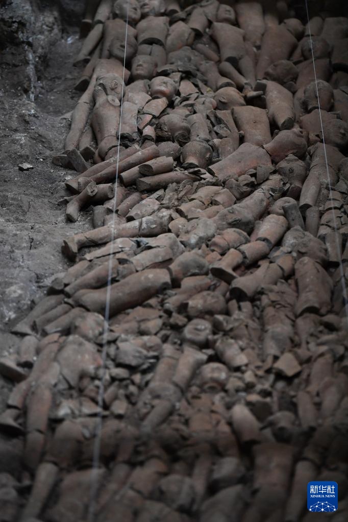 這是江村大墓外藏坑出土的彩繪陶俑(12月16日攝)。