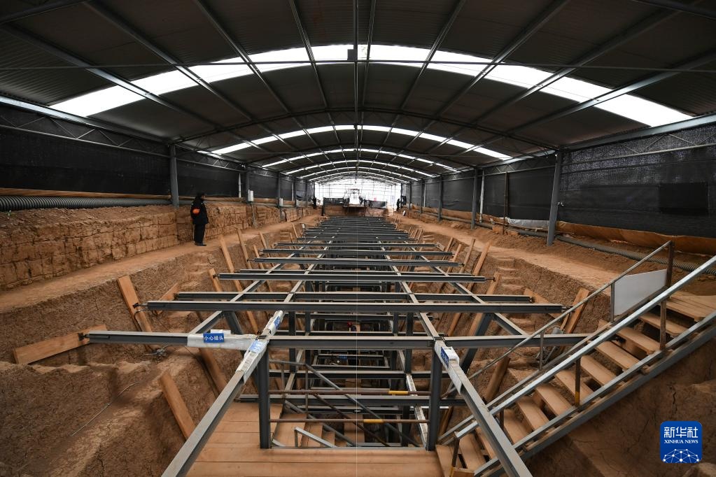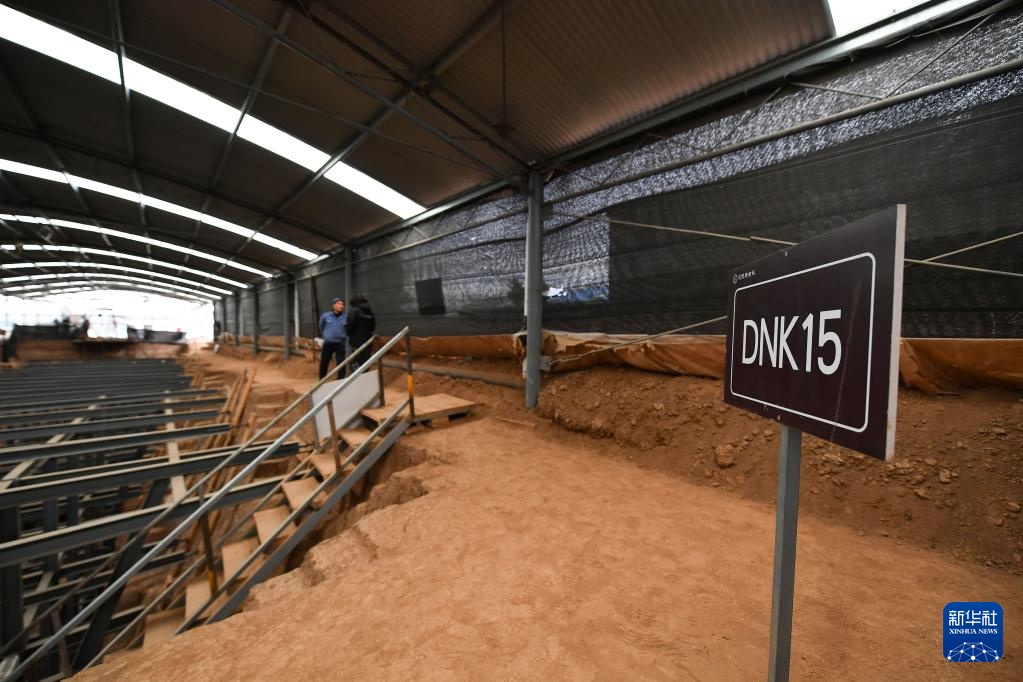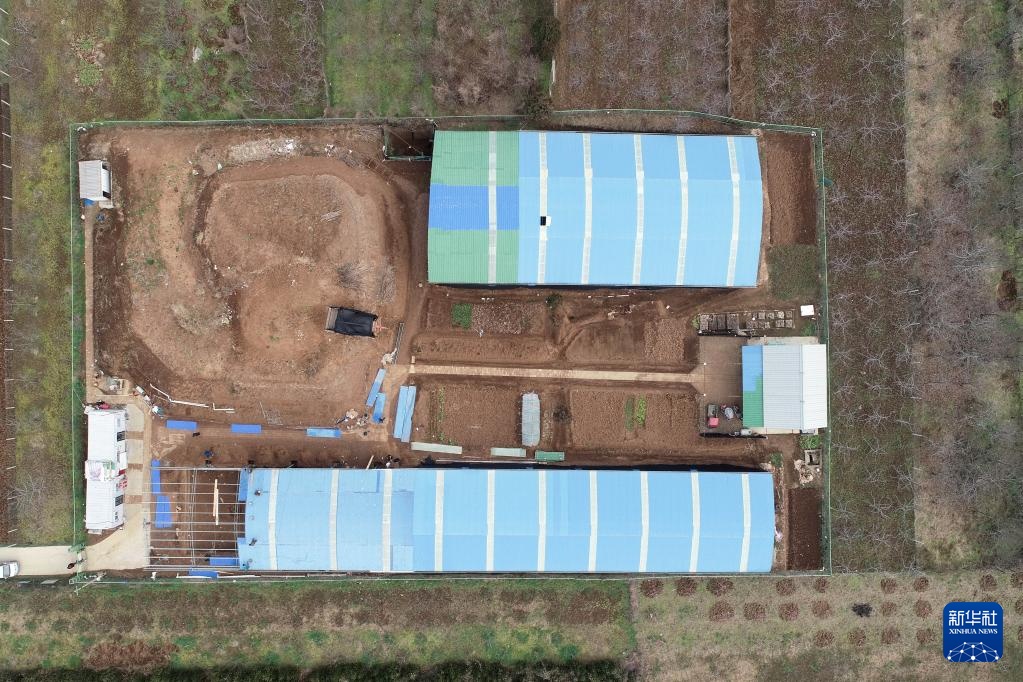 12月16日拍攝的江村大墓外藏坑發掘現場(無人機照片)。