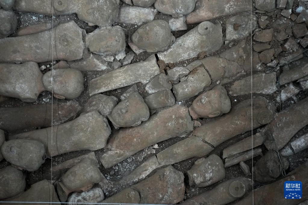 這是江村大墓出土的彩繪陶俑(12月16日攝)。