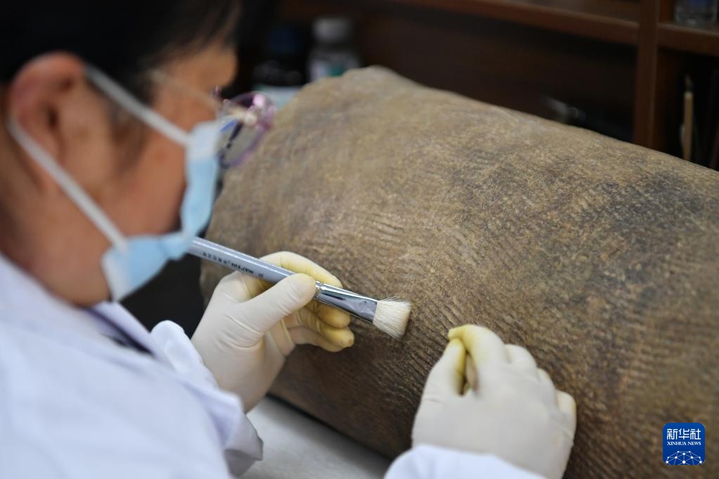 12月16日,工作人員對江村大墓出土的文物進行清理。