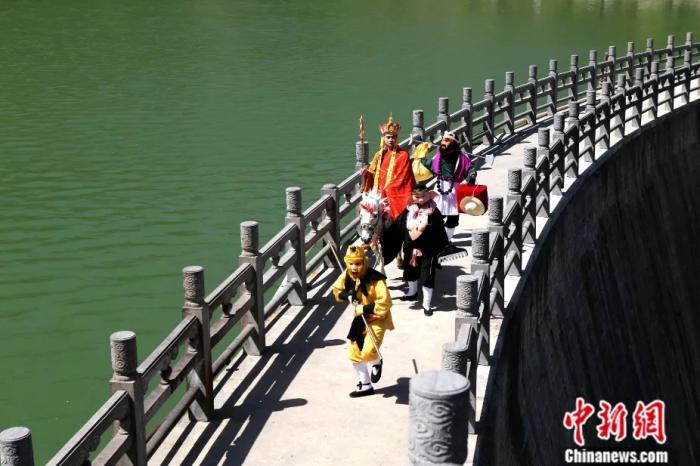 2017年4月,河南濟(jì)源,演員扮演成唐僧師徒演繹《西游記》經(jīng)典故事場景向86版《西游記》致敬。中新社發(fā) 王中舉 攝