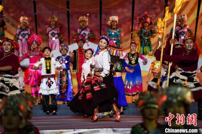 圖為演員們正在表演藏族歌舞《炯卓》。 何蓬磊 攝