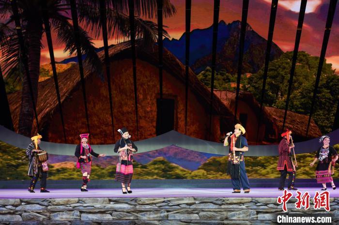 圖為演員們正在演唱海南黎族原生態歐歐調民歌《田野歡歌》。 何蓬磊 攝
