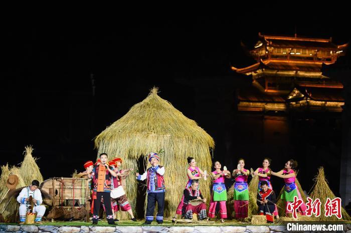 圖為演員們正在演唱鞍子苗歌《嬌阿依》。 何蓬磊 攝
