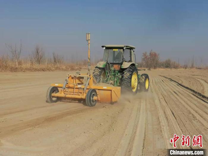 中新網新疆喀什12月20日電 (記者 朱景朝)20日,天剛亮,新疆黨委網信辦駐莎車縣巴格阿瓦提鄉團結村第一書記李江河和部分村干部,趕到500畝棉種田,查看土地平整情況。