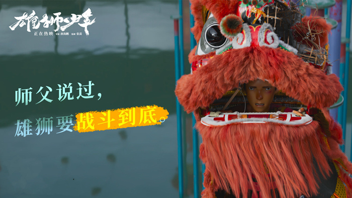 影片的后半段,阿娟助力師傅和伙伴在舞獅大賽拔得頭籌,最后,他決心向最高的“擎天柱”發(fā)起挑戰(zhàn),此時(shí),《莫欺少年窮》生猛的旋律響起,阿娟蛻變成了“雄獅”。