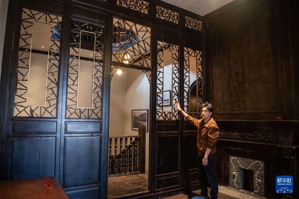 12月22日,工作人員在介紹立德樂洋行舊址內部細節的修繕情況。
