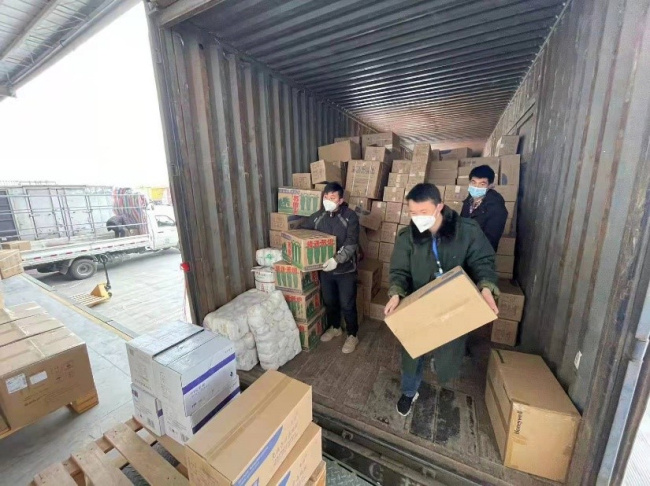 1月3日,各類物資陸續抵達科大訊飛合肥總部園區,集中裝車發往西安。此次捐贈的20余噸抗疫物資除了包含群眾必需的蔬菜、米面、食用油等生活物資外,還包含防疫必需的防護服、口罩、酒精噴霧等醫療物資。