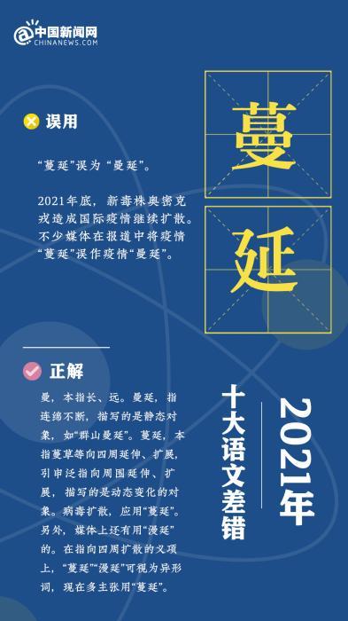 在每年的評選中,《咬文嚼字》雜志社一直遵循著典型性、新聞性、廣泛性三個標準,進行年度“十大語文差錯”的評選。黃安靖介紹稱,2021年,“語文生活”中出現了許多引起社會廣泛關注的“熱點”事件。
