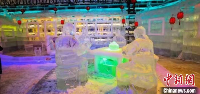 2022右玉冰雪嘉年華冰雕園是右玉“冰雪之旅”暨2022山西右玉冰雪嘉年華系列活動之一。 李潔軍 攝