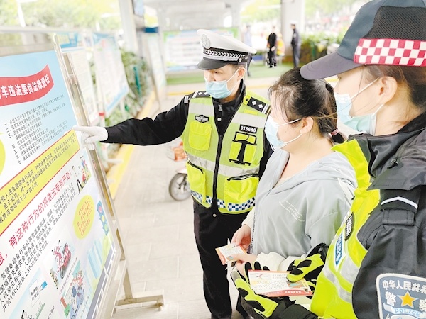 武漢交警街頭開展電動自行車交通安全宣傳。(通訊員 龔軒 攝)