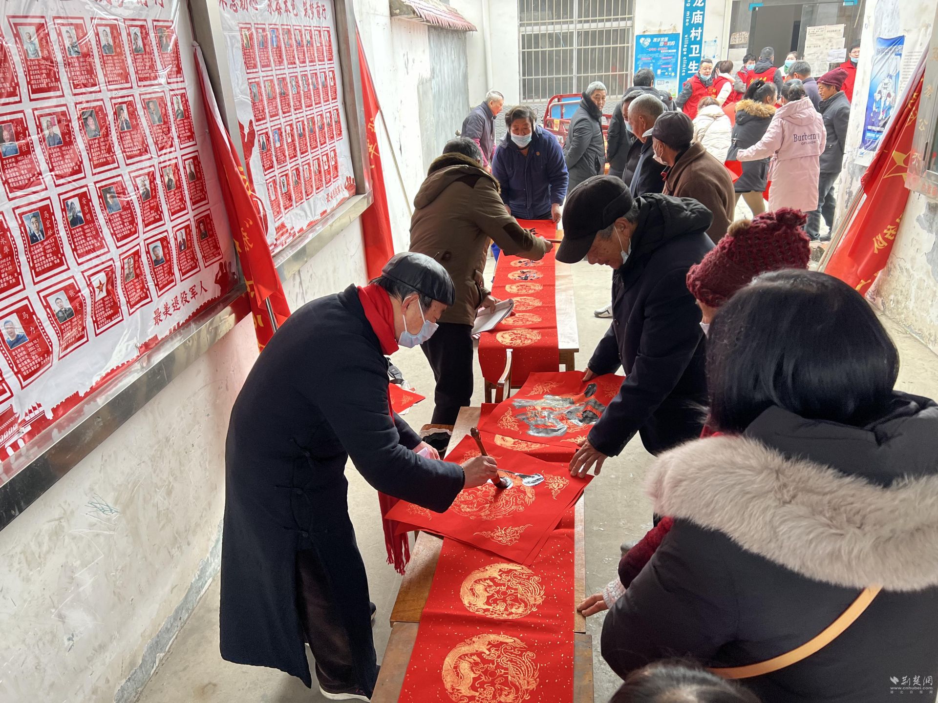 書畫協會的退役軍人“大家”現場揮毫潑墨,為群眾寫下一幅幅對聯和福字貼,提前送上節日美好祝福。