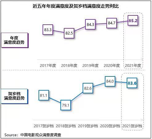 記者今天從中國電影藝術(shù)研究中心了解到,截至目前,中國電影觀眾滿意度項目完成了第七個年度調(diào)查,2021年年度觀眾滿意度得分85.2分,為七年來最高值。