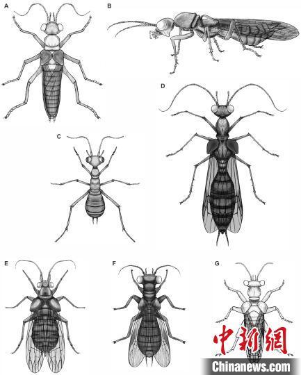奇翅科及相關(guān)類群化石照片?!∧瞎潘?供圖